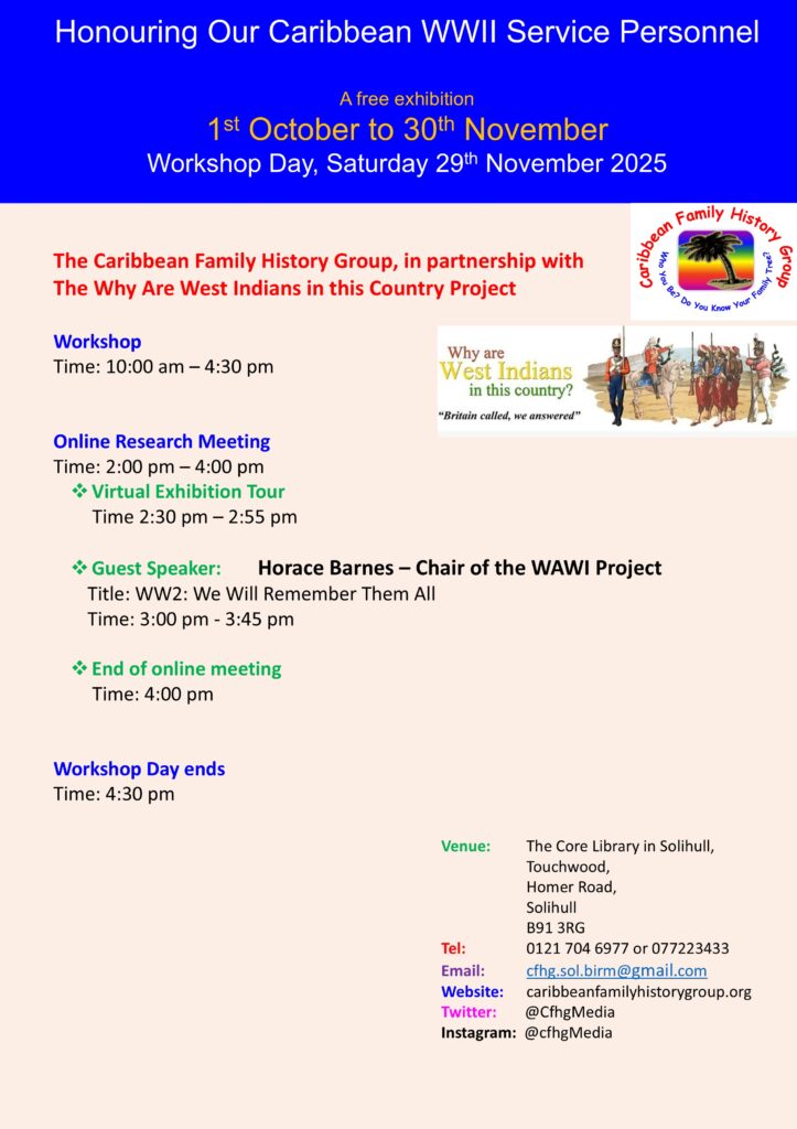 Workshop – Saturday 29th November 2025 / Caribbean Military research, Family History, Family History Show, Meetings, News, West Indies Military / By Admin